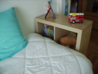 No quarto do Tiago além da cama dele, existe outra cama normal de solteiro que já lá estava para visitas e acabou por ficar. Serve de sofá e amamento muitas vezes o Tiago lá sentada.